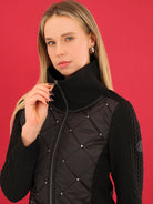 This lightly quilted jacket by Dolcezza has an optional funnel collar with zip fastening and the quilting is highlighted with metallic studs