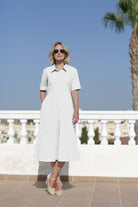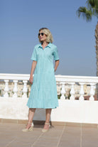 This short sleeved button through dress by Pomodoro has a tiered skirt. An ideal dress for holidays.