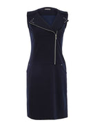 This stylish dress by Dolcezza in a stretch fabric has an offset front zip fastening with optional lapels which have stud detail which also highlights the slant pockets