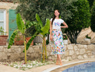 This skirt by Dolcezza in a seersucker fabric has an abstract print and an easy fitting waistline with button through front fastening