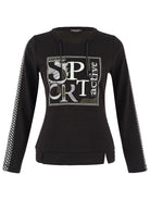 This striking top by Dolcezza has a drawstring neckline and a stone enhanced motif to to front panel.