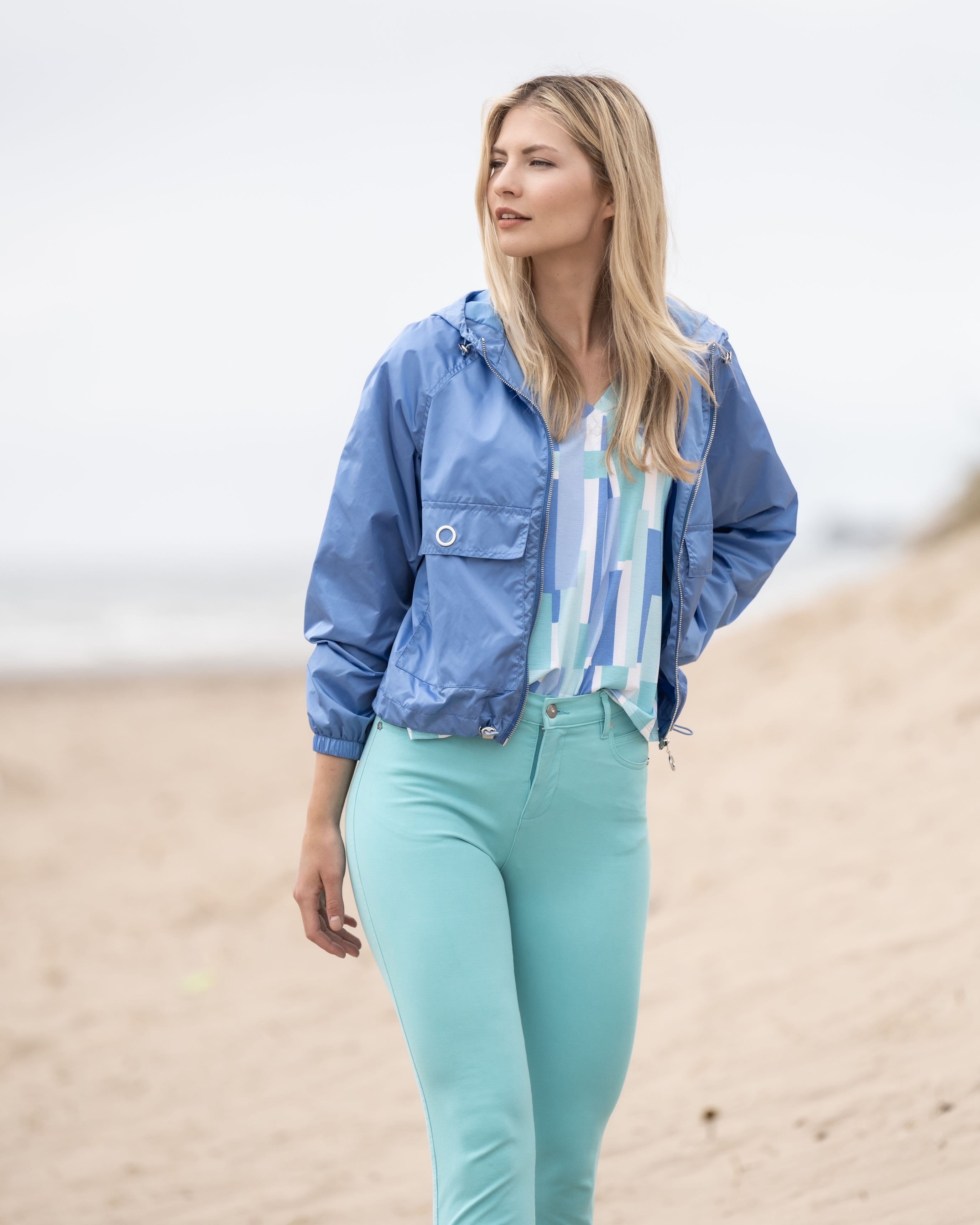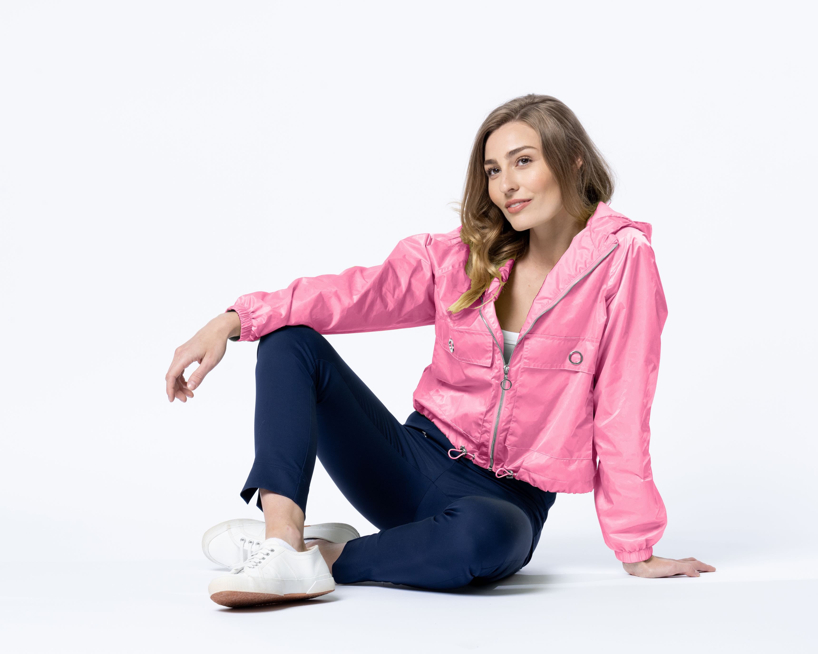 Lightweight hooded jacket with pockets and zip fastening