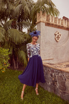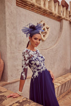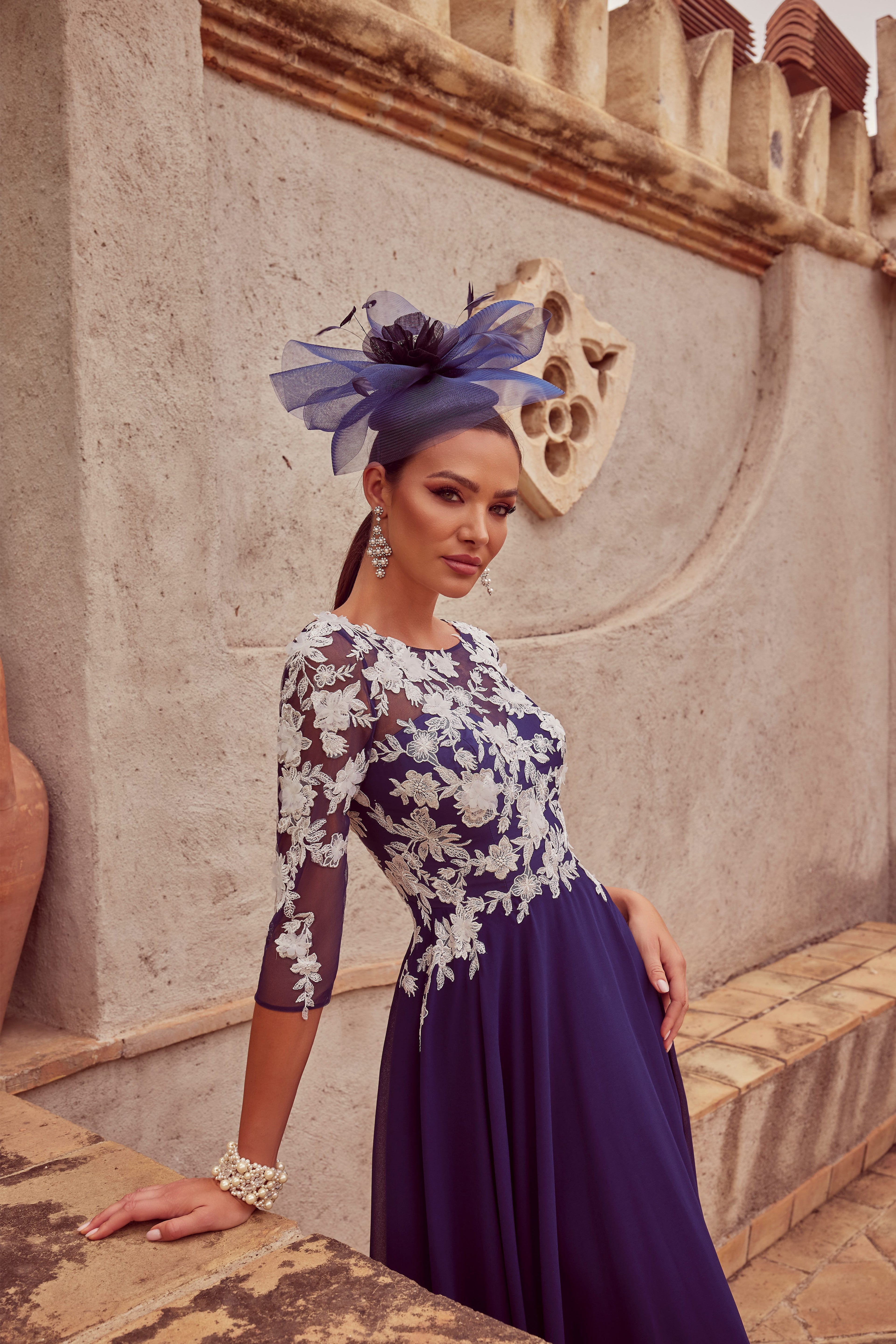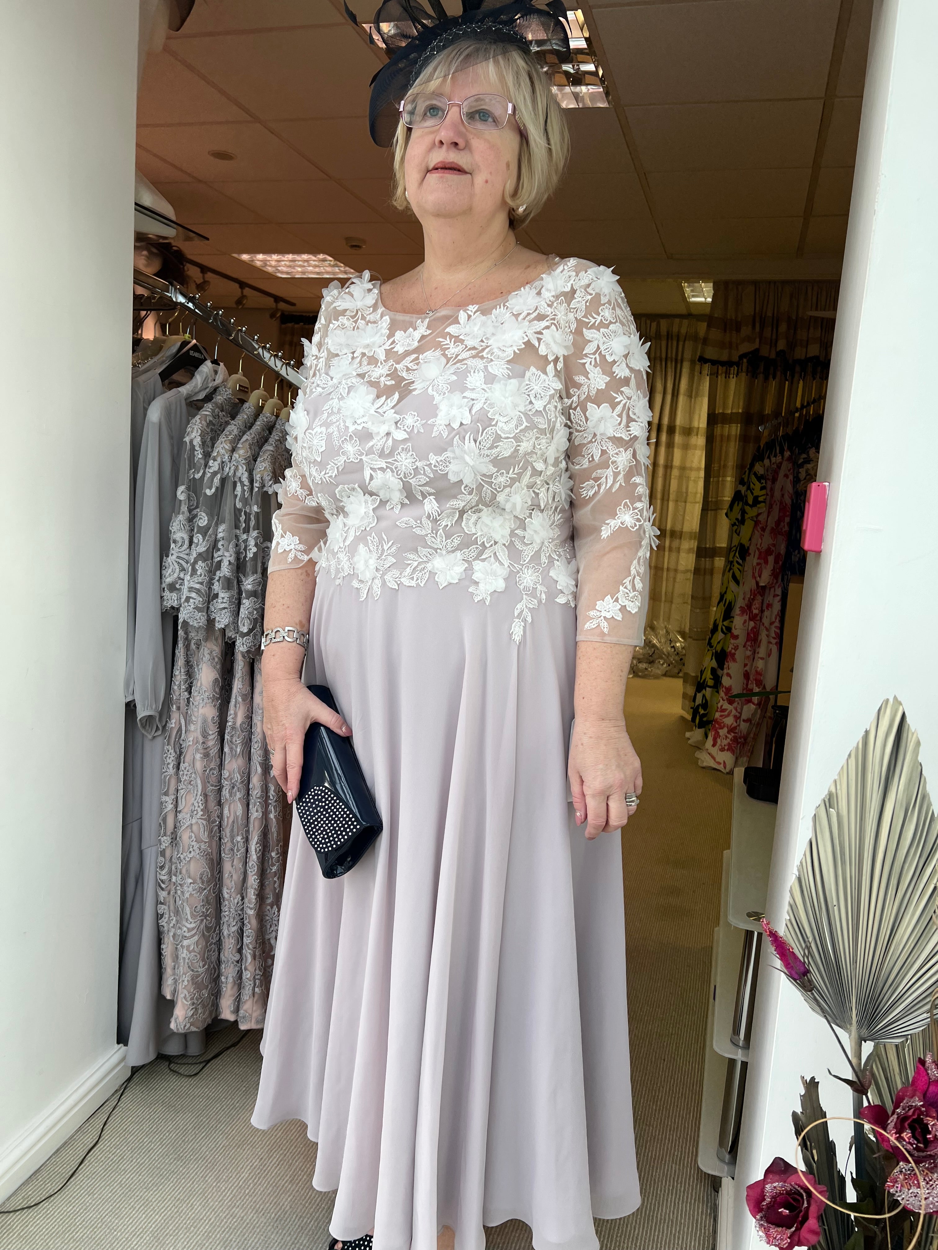 This stunning gown by Veni has a fitted bodice with an overlay of ivory appliquéd mesh