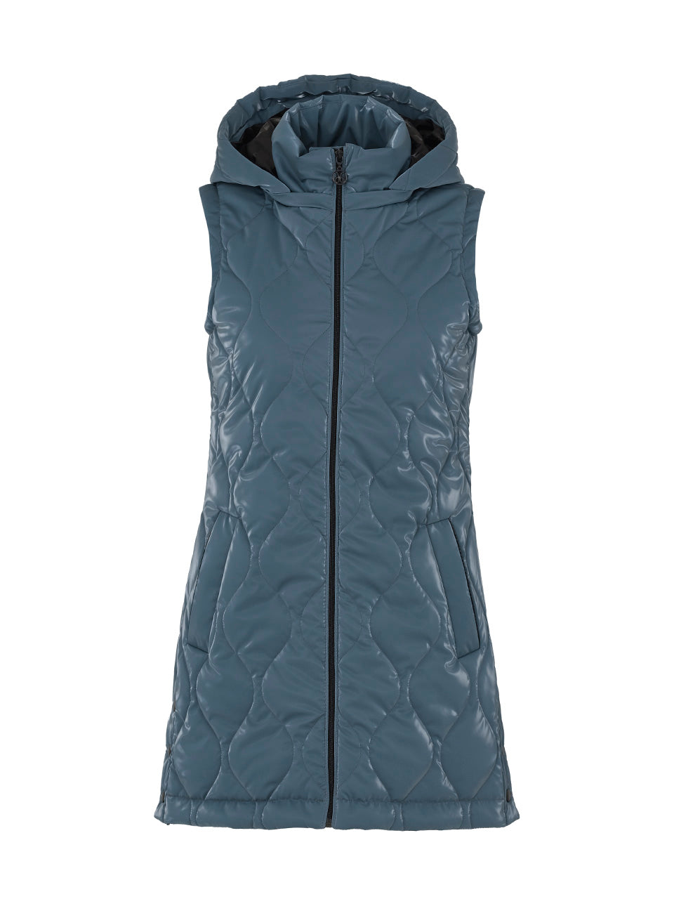 This fabulous gilet by Dolcezza with zip fastening, has a removable hood leaving a cosy stand up collar and deep inset front pockets.