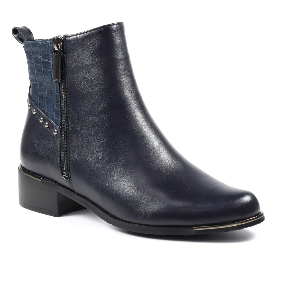 Navy ankle boot by Lunar . Croc and eyelet detail to heel with side zip fastening.