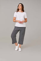 These 3/4 Trousers by Peruzzi with vertical and horizontal panels have a fitted waistband .
