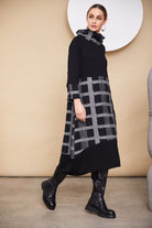 This oversized loose fitting dress by Naya has contrasting check sections on the cowl neck the cuffs and the skirt it also has side seam pockets