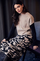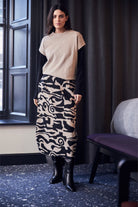This self coloured jacquard top has a scoop round neckline with a drop shoulder and looks great with the jacquard skirt W24202