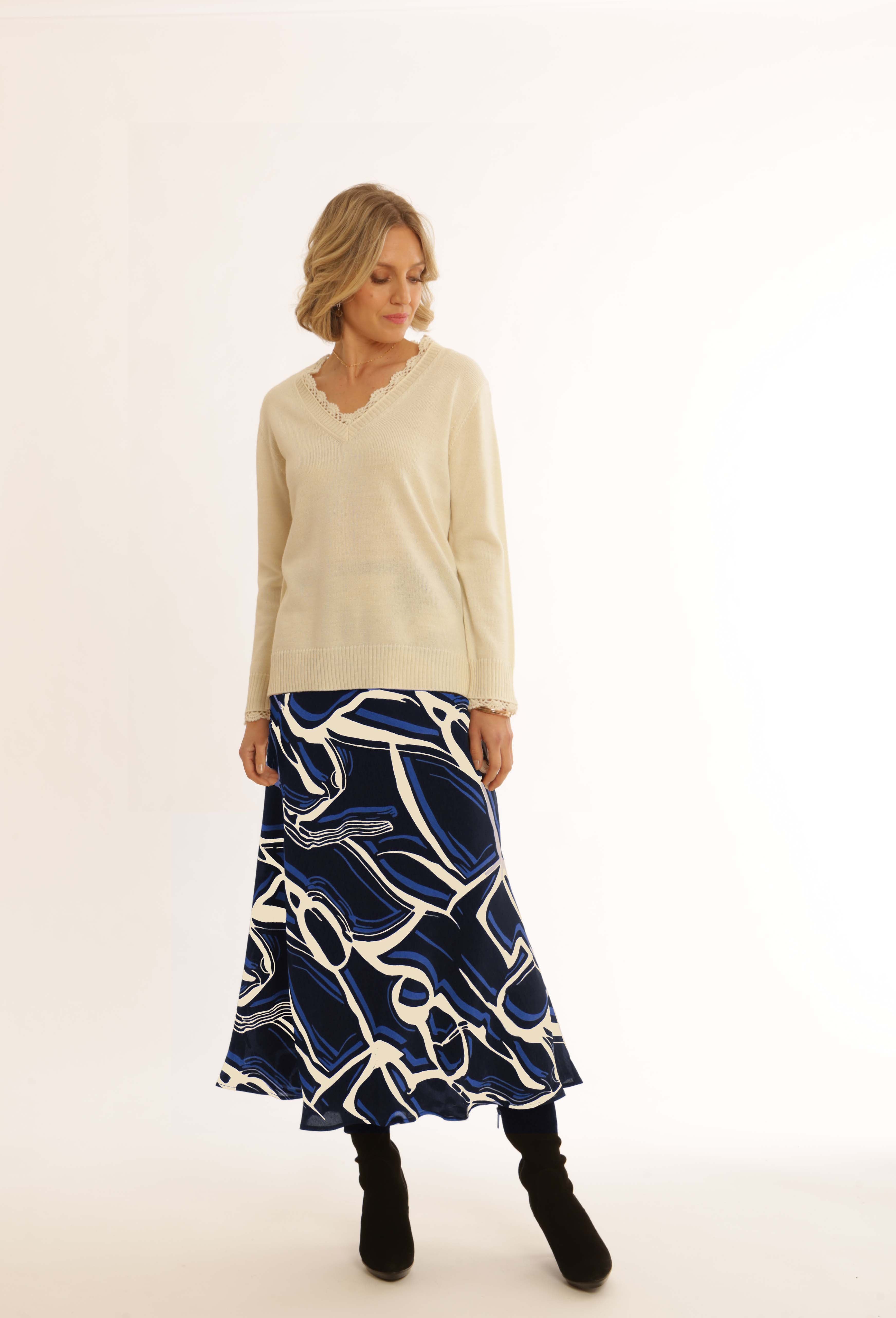 This contour print a line skirt by Pomodoro is fully lined with an easy fit waistband.