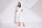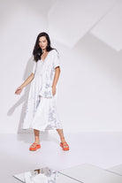 This dress by Naya with v neckline and mock oblique button detail to bodice has a large external swing pocket