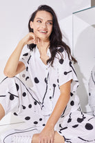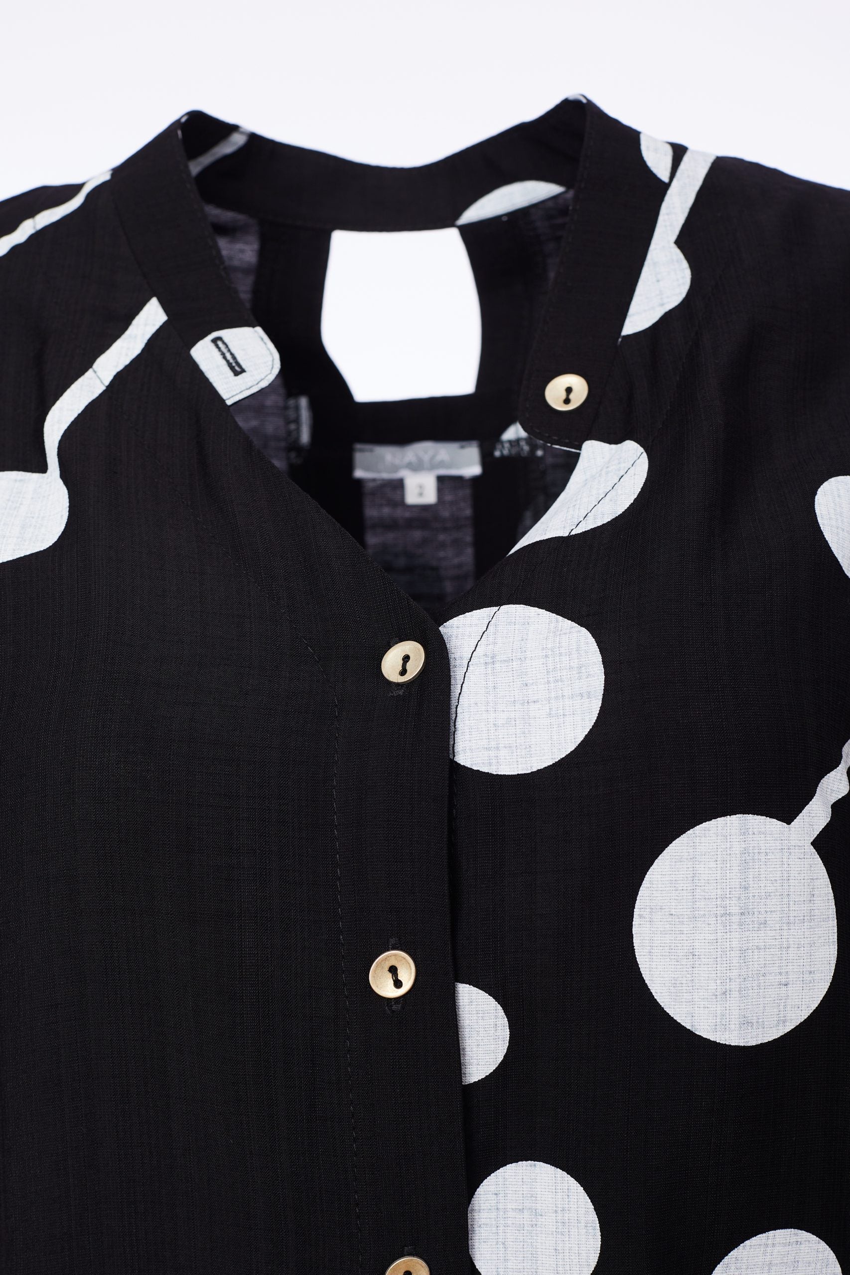 This button through blouse /Jacket with mandarin style collar and dropped sleeves in a spot and brush stroke print