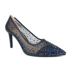 This beautiful shoe is encrusted with stones on a mesh inner and outer throat