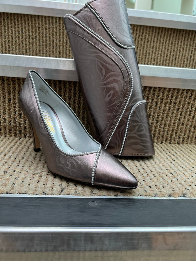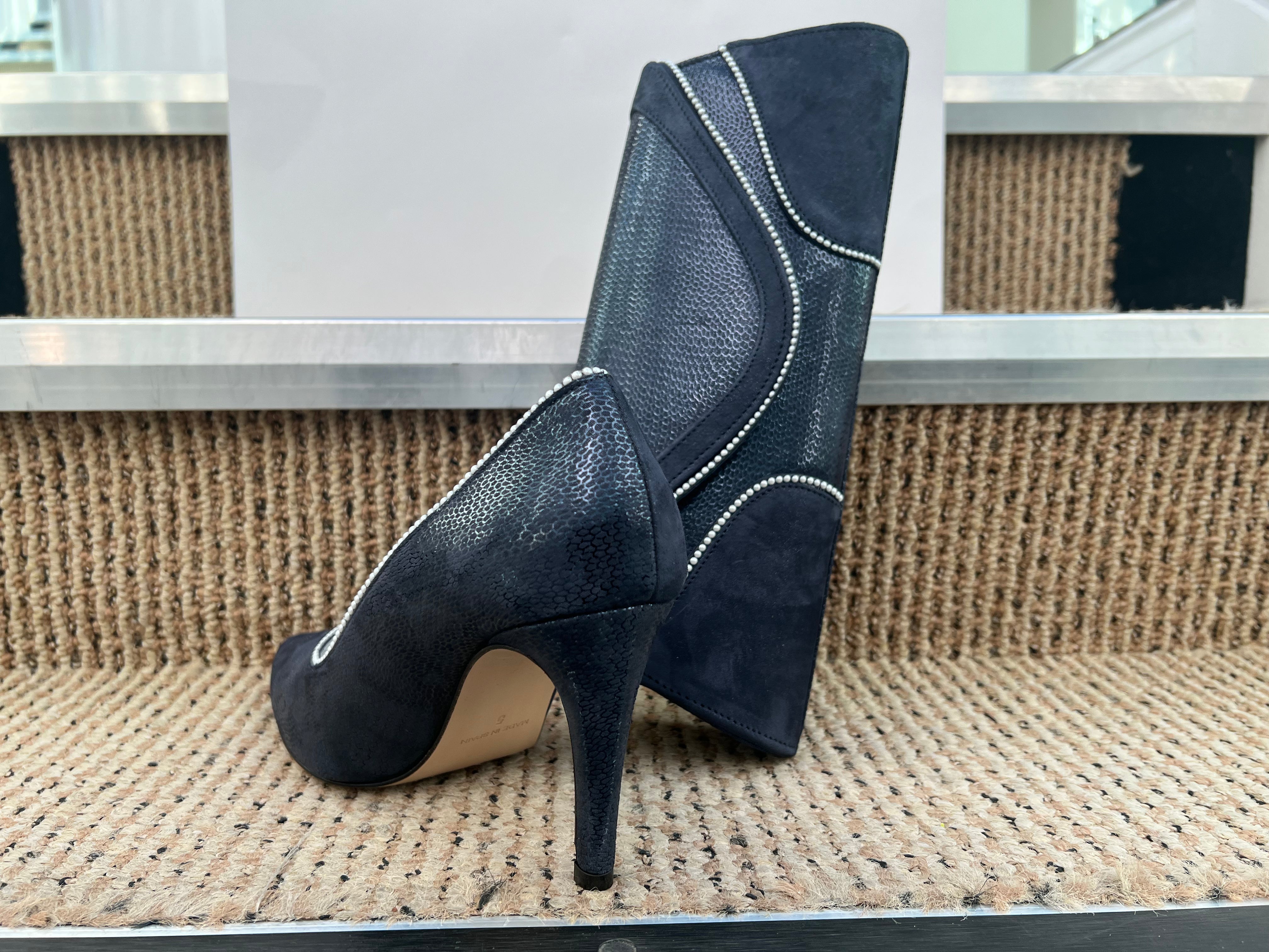 Stunning Leather court shoe by Solitaire in Azul navy with pearl swirl detail to front also this detail is on the matching Handbag