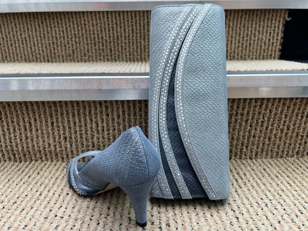 Beautiful Leather shoe by Solitaire in cornflower blue. Open mesh detail to front with diamanté detail.