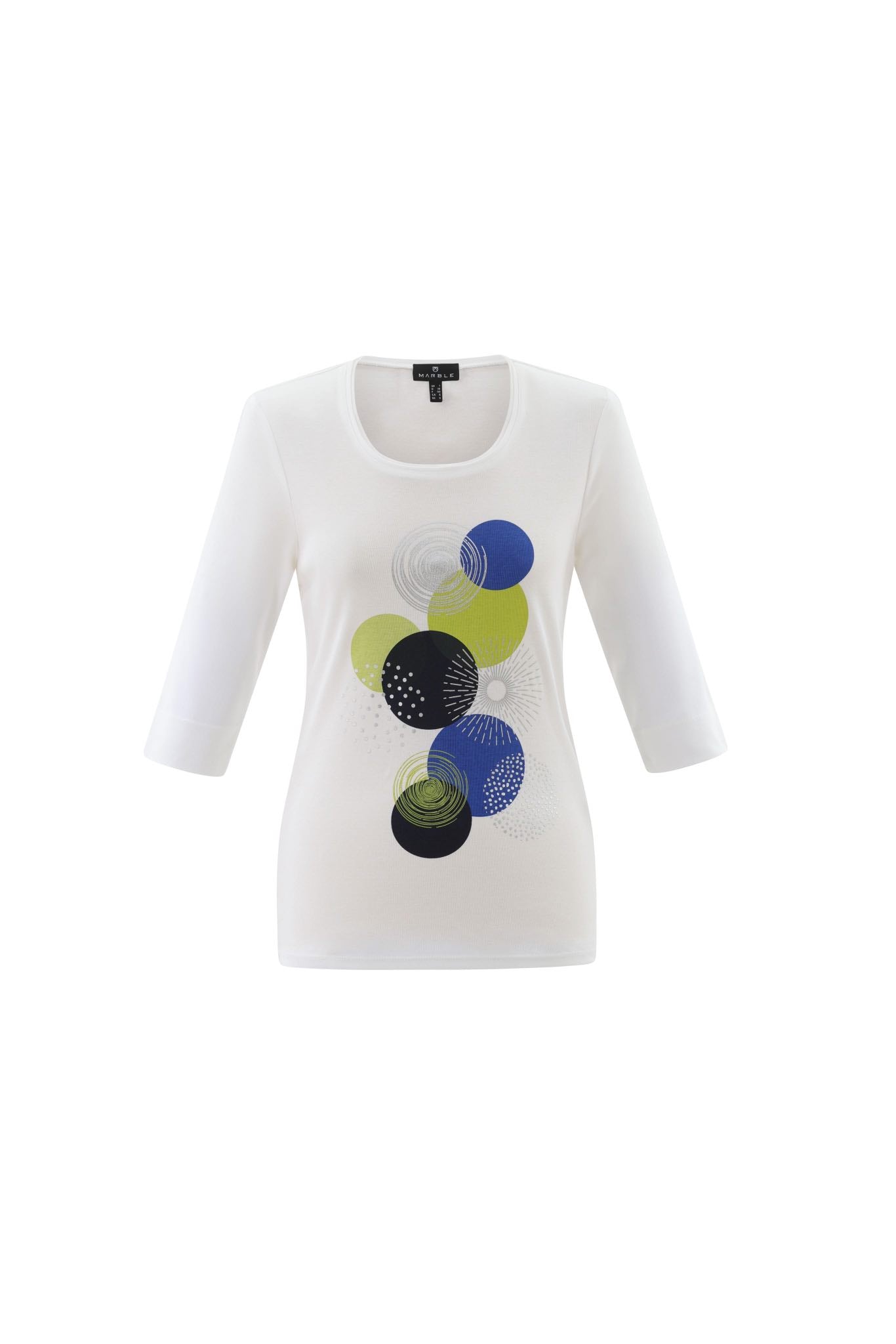 This classic fitting T shirt by Marble has a foil graphic print design . Round neckline and 3/4 sleeves