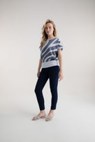 This relaxed fitting sweater by Marble has a metallic twist thread in jacquard pattern , a round neckline and button detail to shoulder.