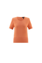 This fitted top by Marble has a round neckline , short sleeves and a button detail to back neckline