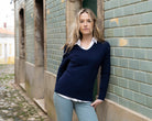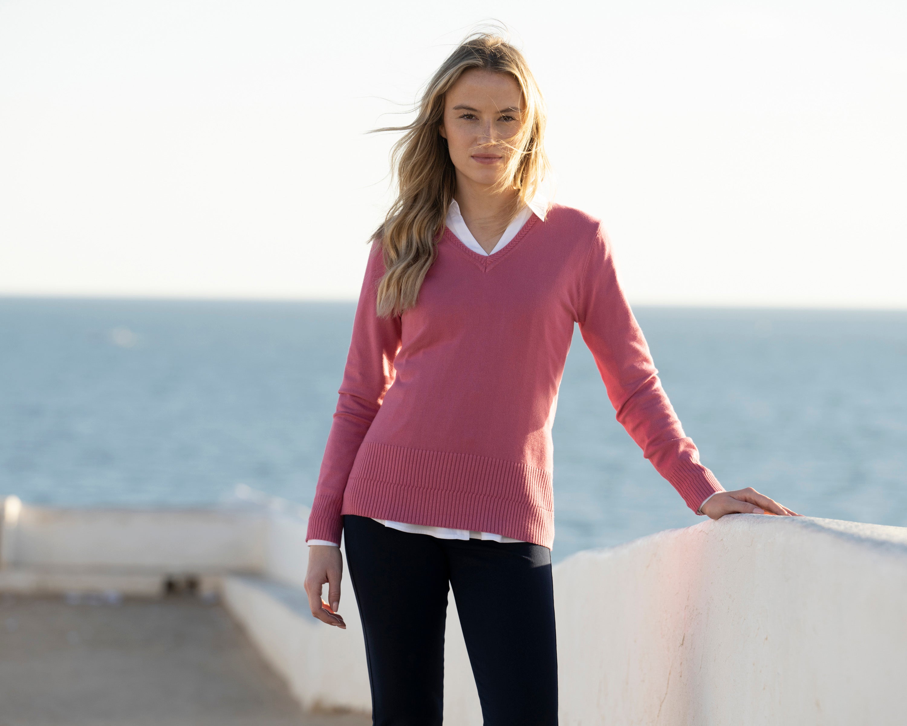 This soft knit sweater in a viscose mix has a placement rib detail to cuffs and hemline