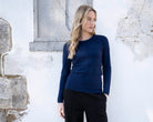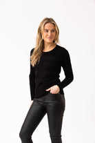This classic fitting sweater by Marble has a horizontal reverse knit detail and stone embellishment