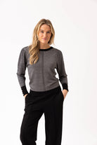 This reversible cardigan with a silver metallic finish has a blouson style sleeve and button through opening with pointelle detail