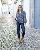 This Lightweight print blouse by Marble has a button through fastening with collar and a front yoke with gather detail