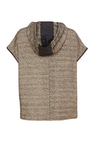 This hooded mix knit top by Naya has a self coloured press stud placket fastening this detail is also on the shoulders and it has front patch pockets .