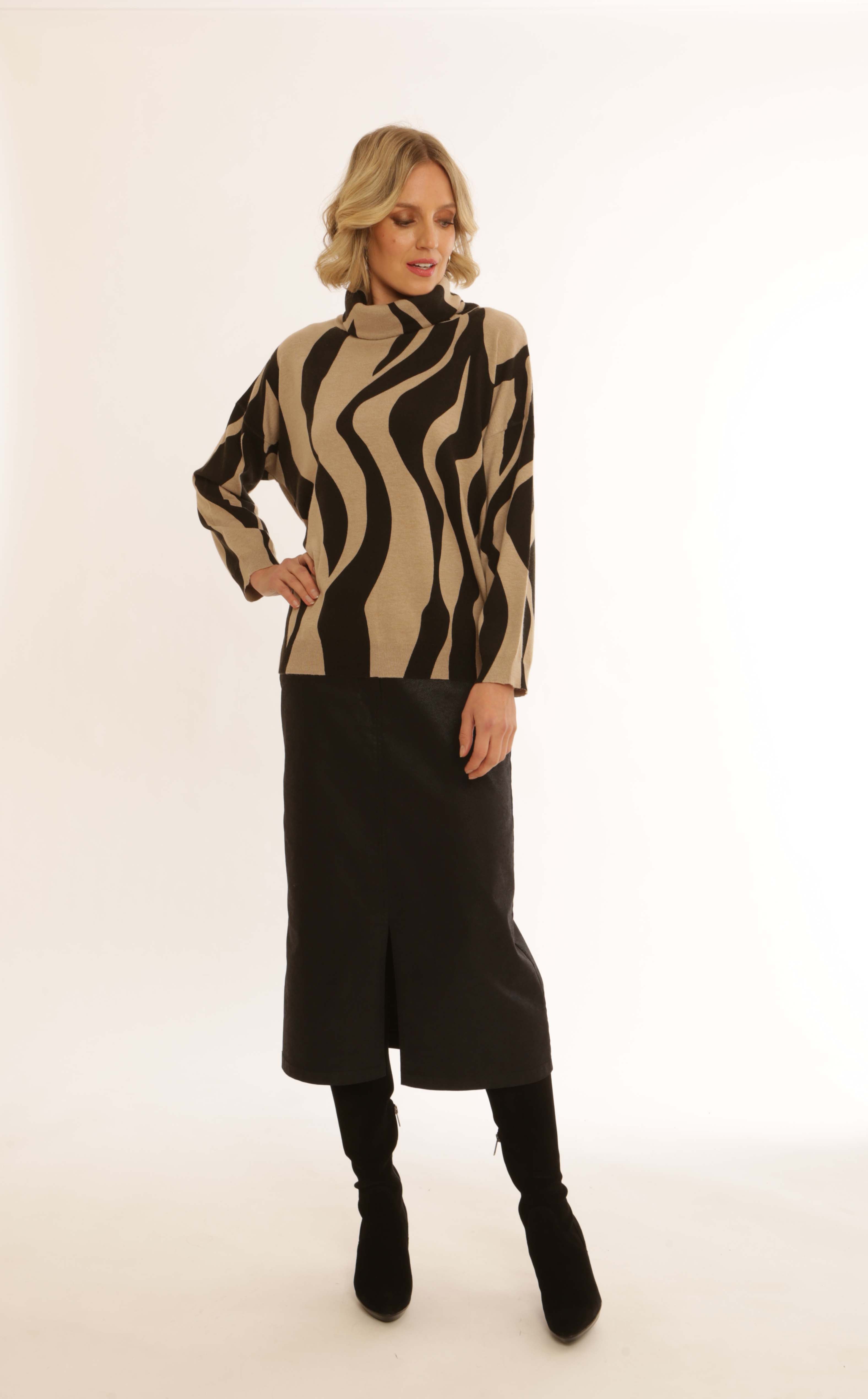 This soft knitted roll neck sweater by Pomodoro which a zebra print pattern