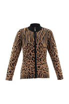 Super soft classic fit knitted zip fastening cardigan with an all over animal print