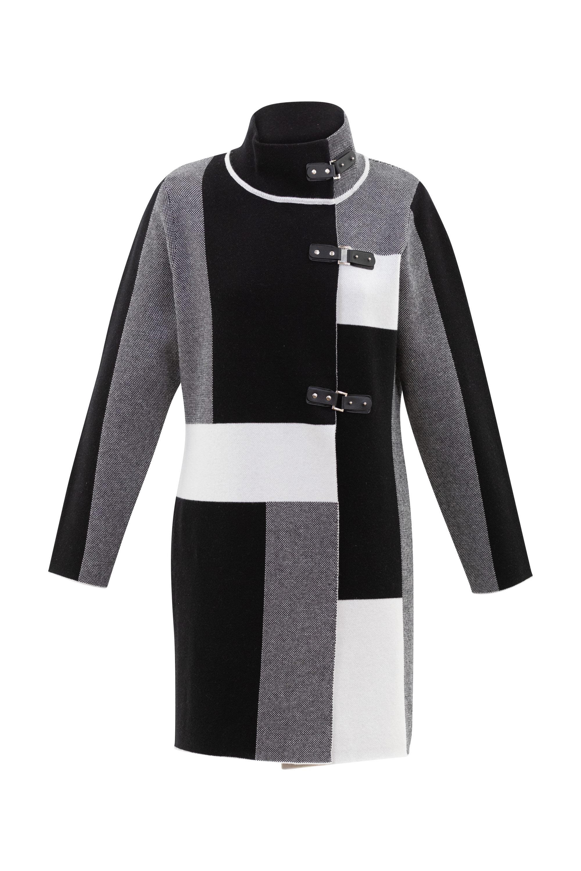 Cotton mix Cardigan/Coat in a 3 colour way block design with buckle detail fastening