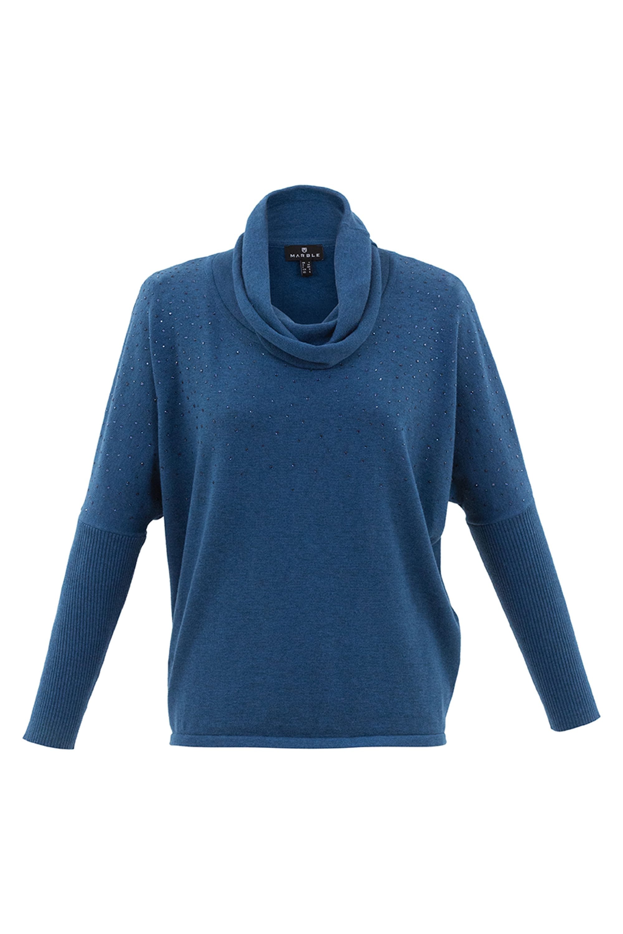 Soft cotton mix turtle neck sweater with a relaxed fitting.It has a drop shoulder and an ottoman chevron knit detail
