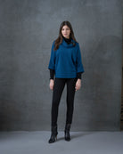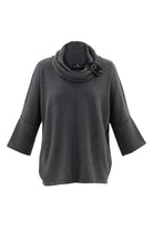 Cotton knitted sweater with cowl neck and PU trim and button detail .