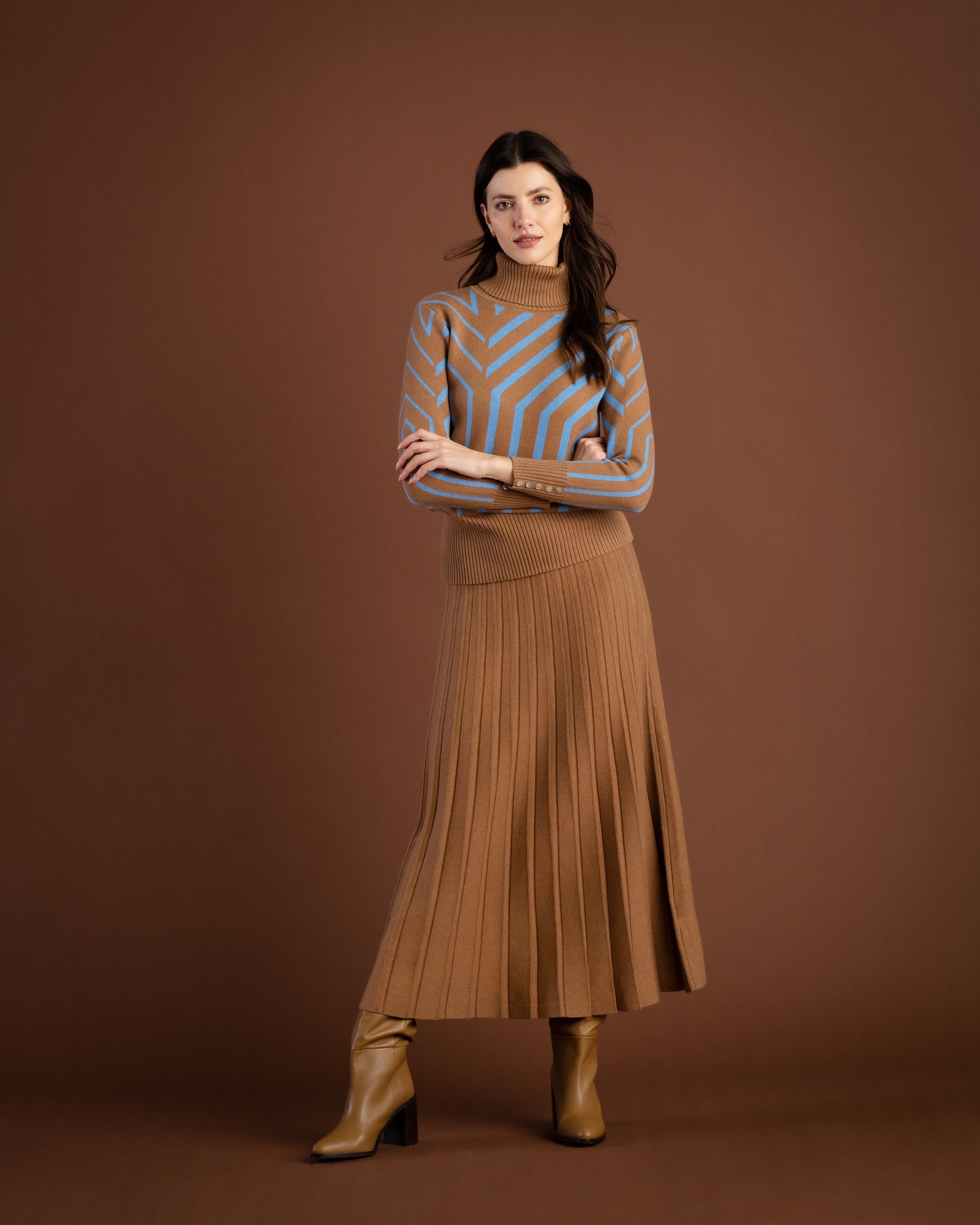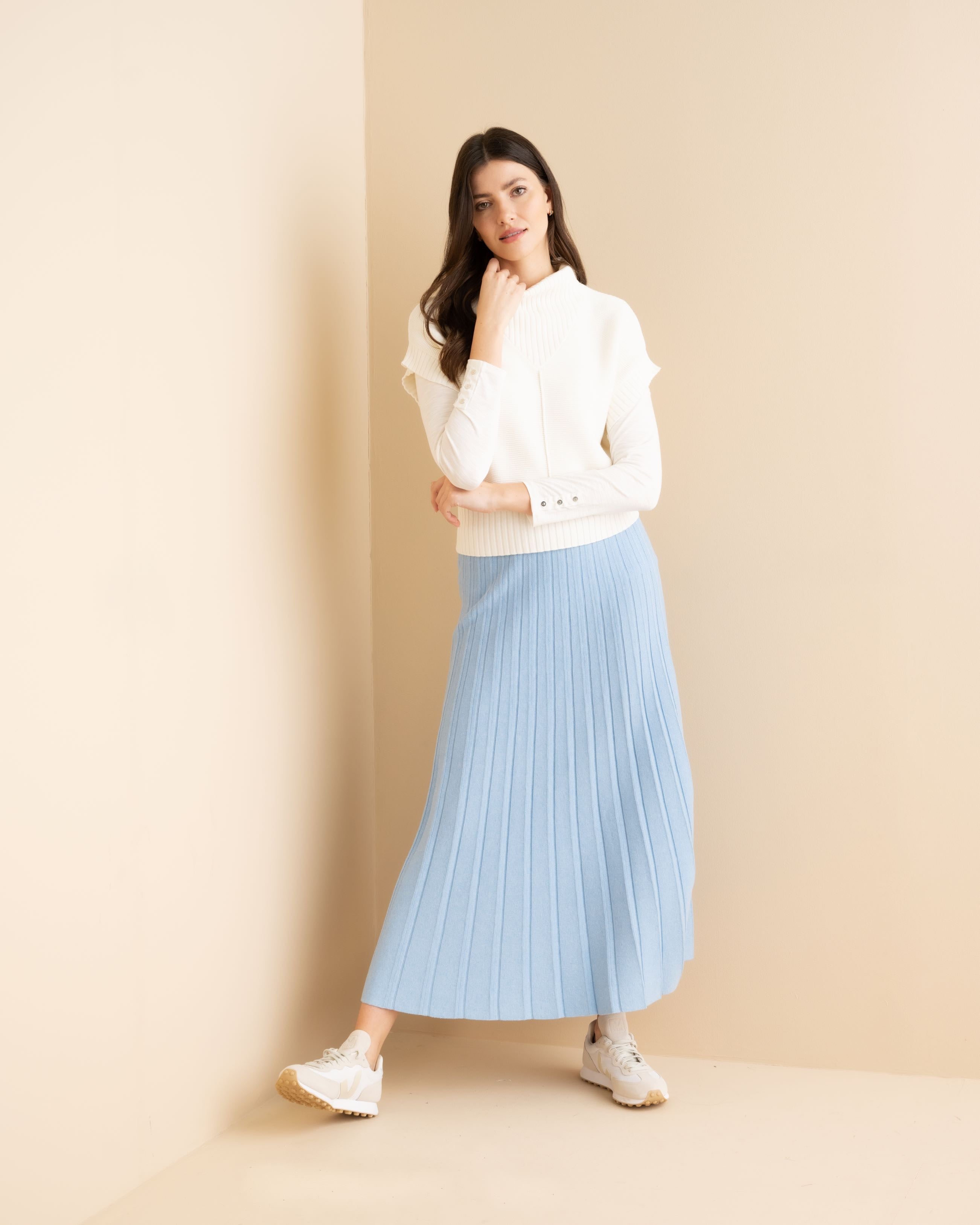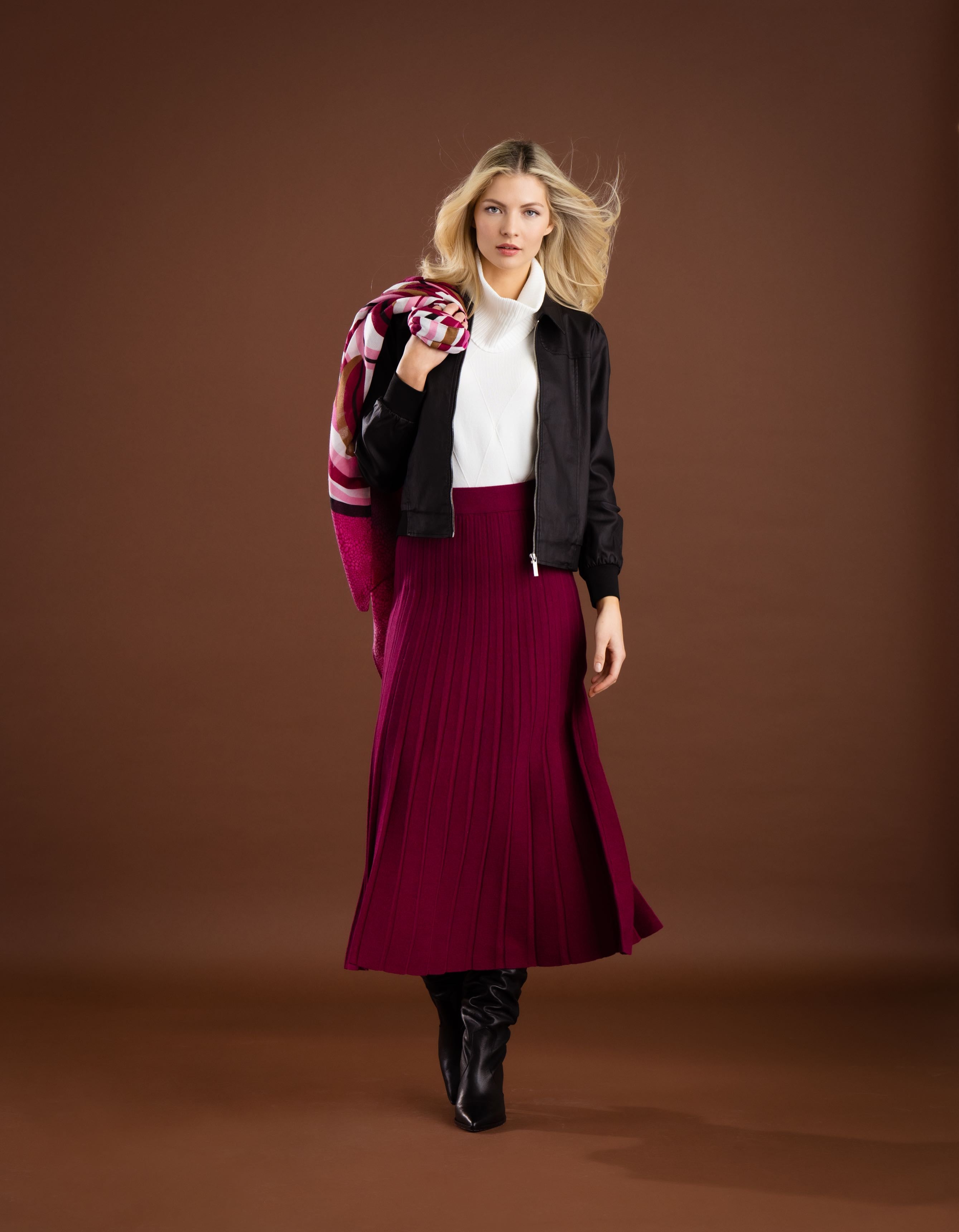 This stylish A Line pleated skirt with elasticated waistband for easy fitting is midi length