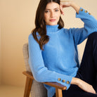 This Cotton mix sweater in a wave design pattern has a ribbed funnel neck , ribbed hem and ribbed sleeves with button detail
