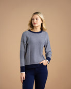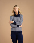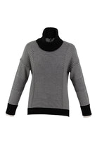 This two colour way mix stripe sweater is a relaxed fitting. The solid colour way snood is detachable