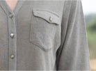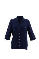 This button through top by Marble is a relaxed fitting polo style . Elbow length sleeves with cuff vent and chest patch pockets