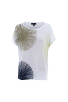 This drop sleeved top by Marble is a relaxed fitting , with a three colour way sunburst pattern