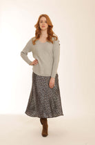 A sweatervwhich looks great with either trousers or skirt , boots or heels.