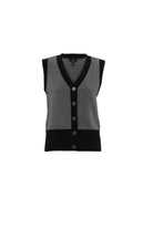 This sleeveless button through vest cardigan by Marble in a 2 colour way twisted yarn has a solid rib detail and gunmetal buttons
