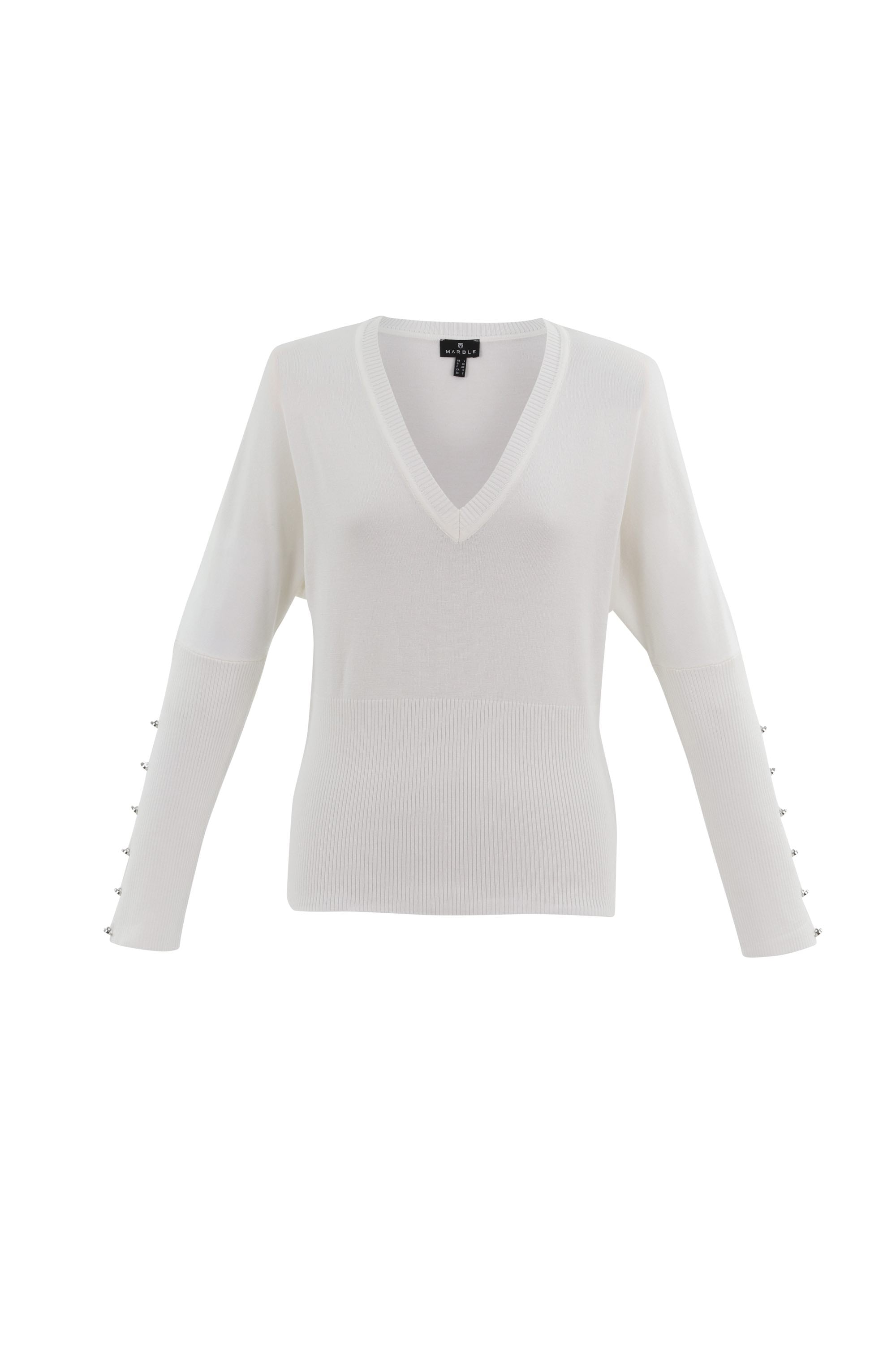 This semi batwing sweater by Marble has a v neckline and open detail to sleeves