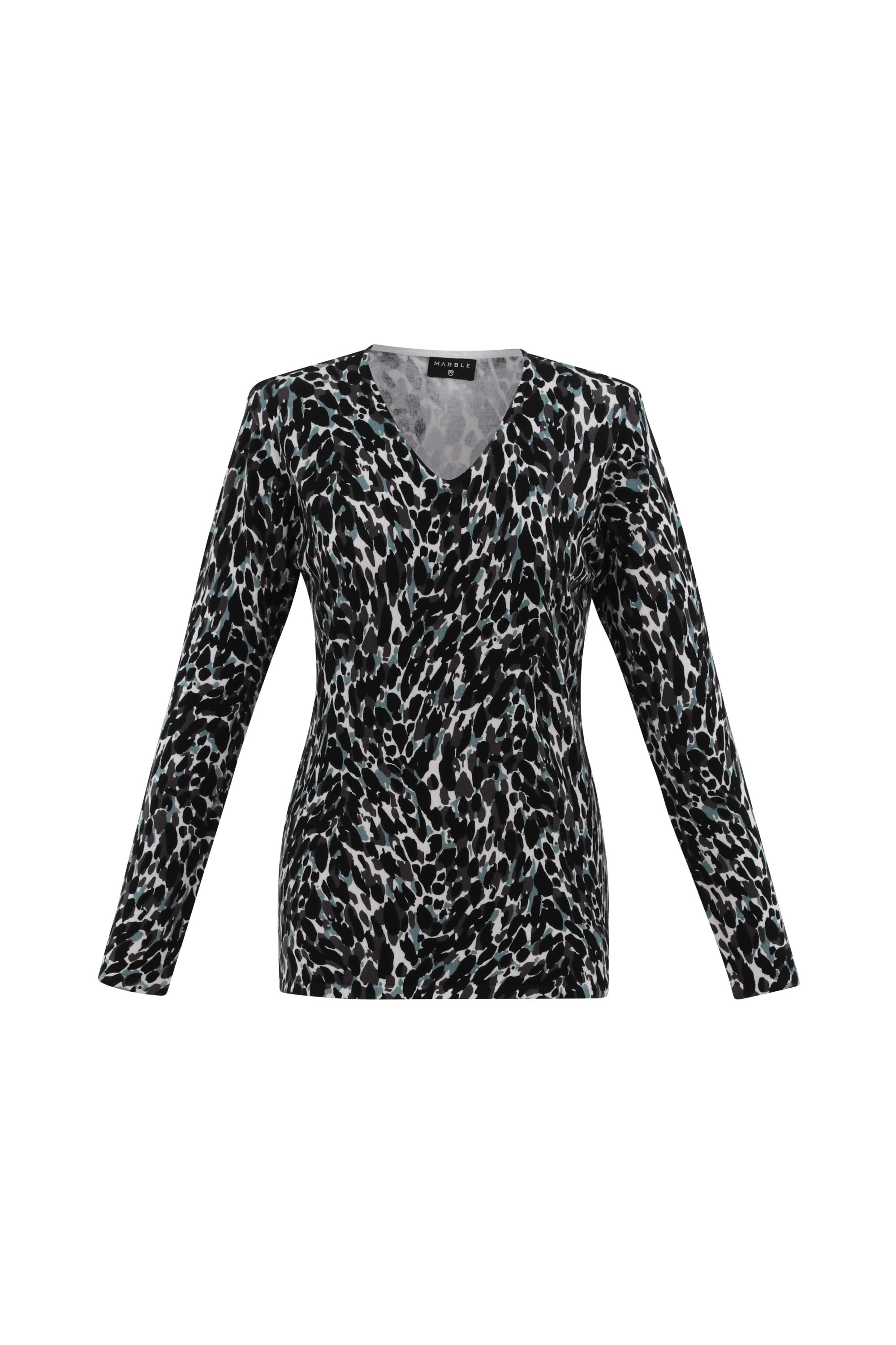 This patterned v neck sweater by Marble is in a super soft viscose knit