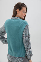 This knitted tank top with v neck is a relaxed fitting. It has a rib detail and side hemline splits. Looks great with the blouse 7691
