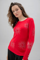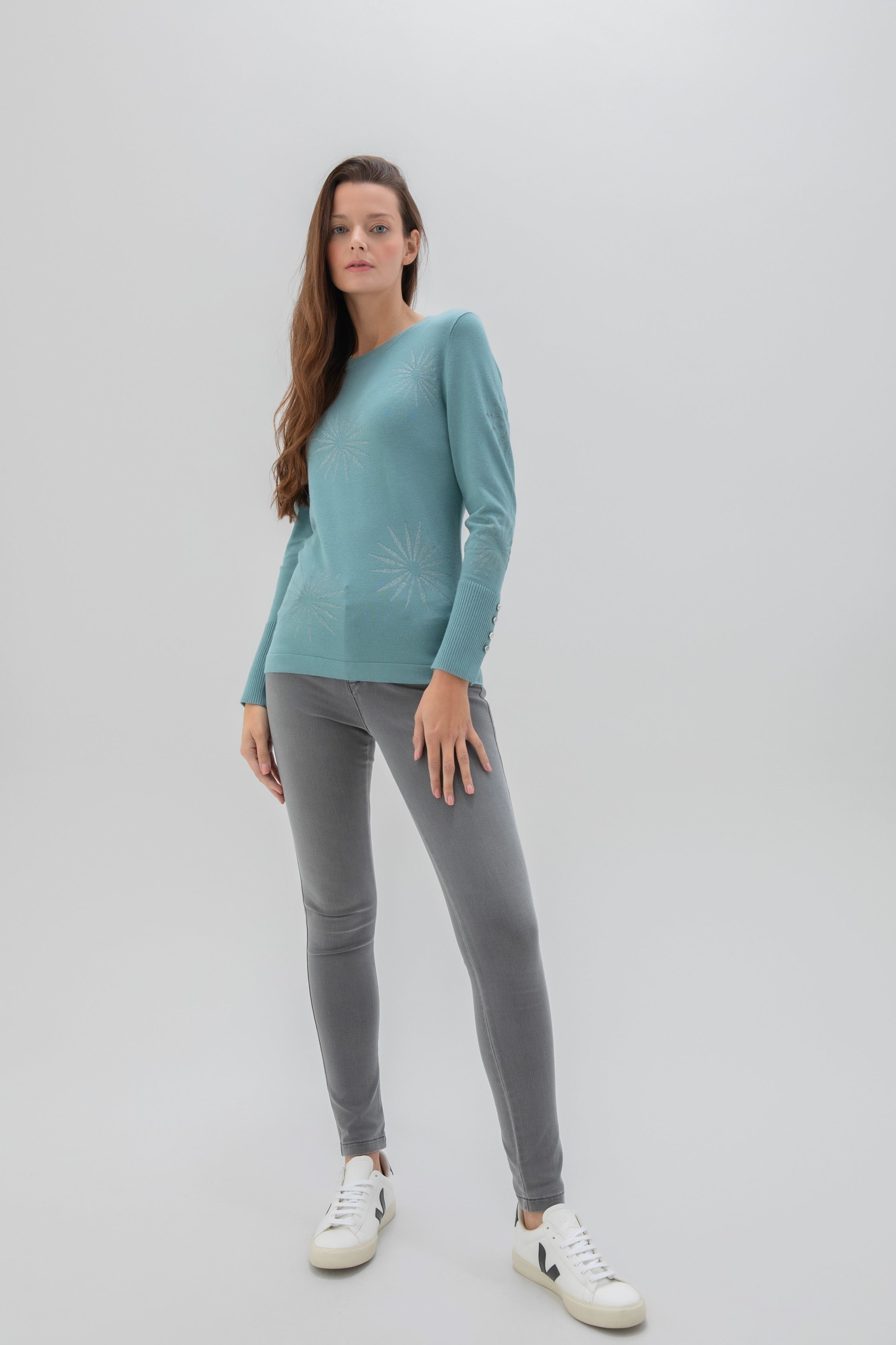This classic fitting sweater by Marble has a foil print design and splits cuffs
