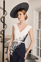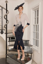 This beautiful dress with jacket by Veni Infantino . The edge to edge waist length jacket has the contrast cuffs.