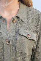 This soft relaxed fitting cardigan by Marble is in a pointelle knit with a flat collar , plackett and buttoned pockets.